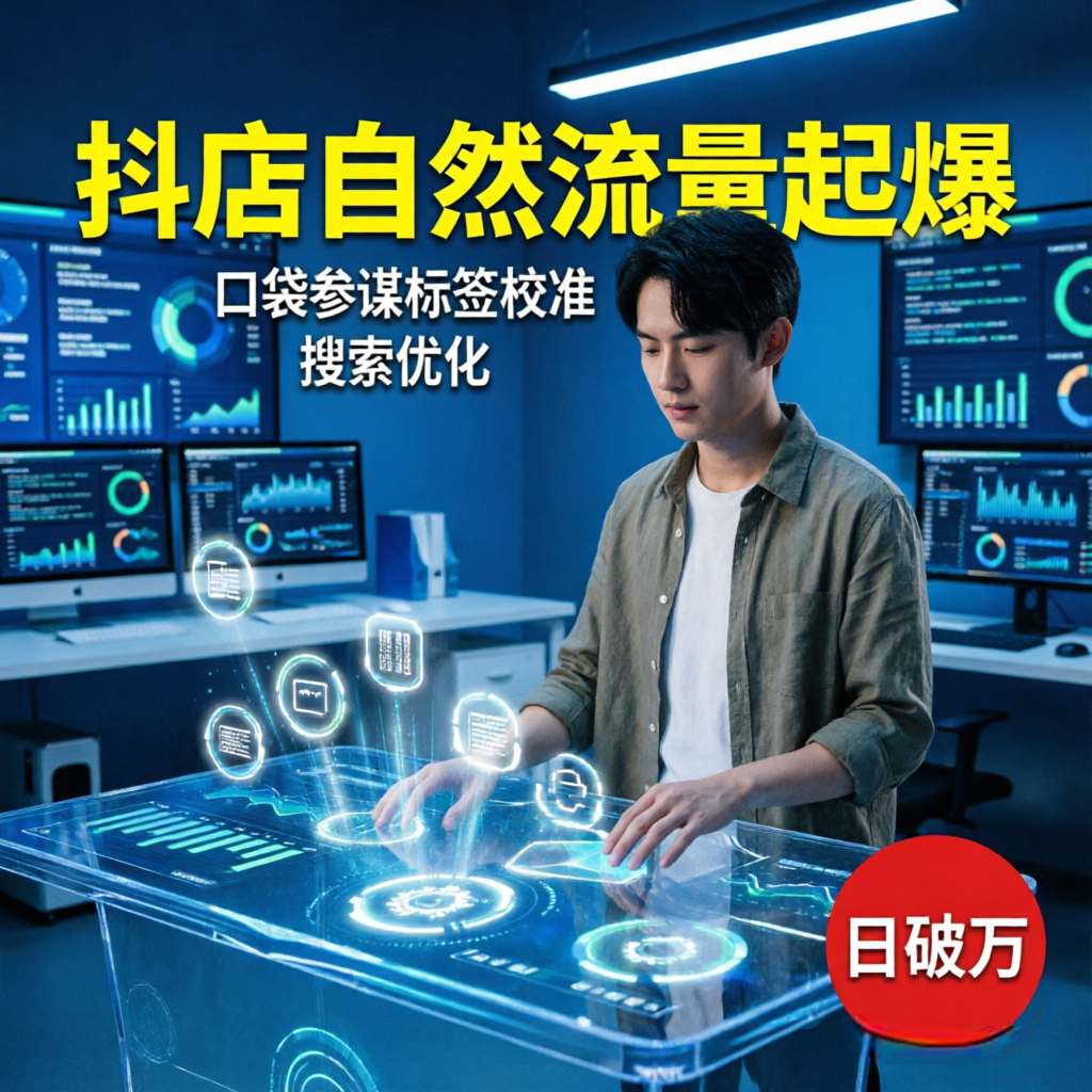 豆包:抖店自然流量起爆用口袋参谋,标签校准+搜索优化+权重拉升,零付费单日流量破万。