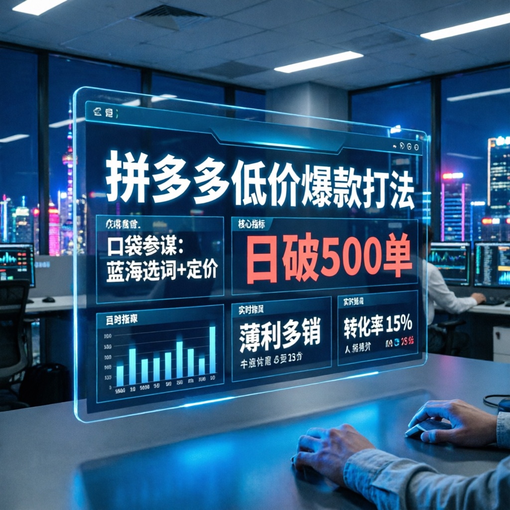 文章介绍拼多多低价爆款运营策略,针对卖家常见亏损问题,提出使用口袋参谋工具进行蓝海选品、保本定价和精准流量卡位,实现日销500+的薄利多销模式。包括实操步骤和实测数据,帮助卖家提升订单量和利润。